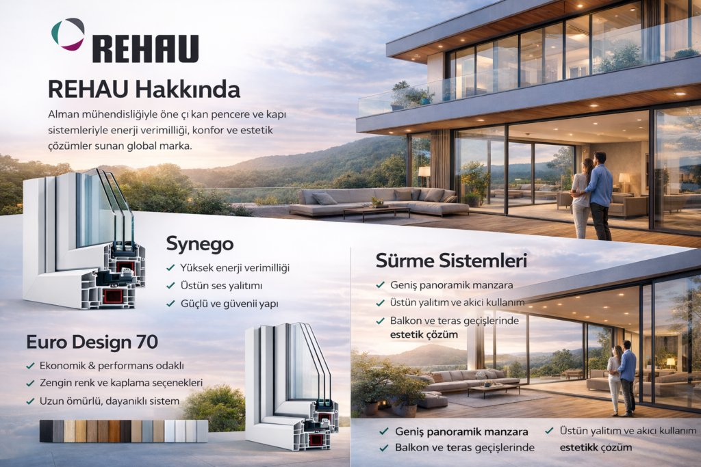 REHAU, pencere ve kapı sistemleri alanında dünya çapında güvenilirliğiyle bilinen, Alman mühendisliği temelli global bir markadır. Yenilikçi profil teknolojileri sayesinde enerji verimliliği, konfor ve estetik beklentilerini tek bir sistemde buluşturur.